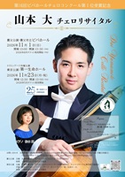 | 2026年11月1日(日) 13:00開場 13:30開演(予定) 第16回ビバホールチェロコンクール 第1位受賞記念 山本 大 チェロリサイタル 詳細は決定次第お知らせします *-*-*-*-*-*-*-*-*-*-*-* 第16回ビバホールチェロコンクールで、見事第1位を受賞された、 山本大さんの受賞記念リサイタルの日程が決定しました! このリサイタルは第1位受賞の副賞として、コンクールの翌年、 養父市ビバホールと東京、第一生命ホールで開催されるものです。 東京公演の開催には、東京にお住まいの養父市出身 「東京養父市会」のみなさまに「東京リサイタル実行委員会」を 立ち上げていただきお手伝いいただきます。 また、第一生命ホール様、認定NPO法人トリトン・アーツ・ネットワークのみなさまにもお手伝いいただき開催します。 |